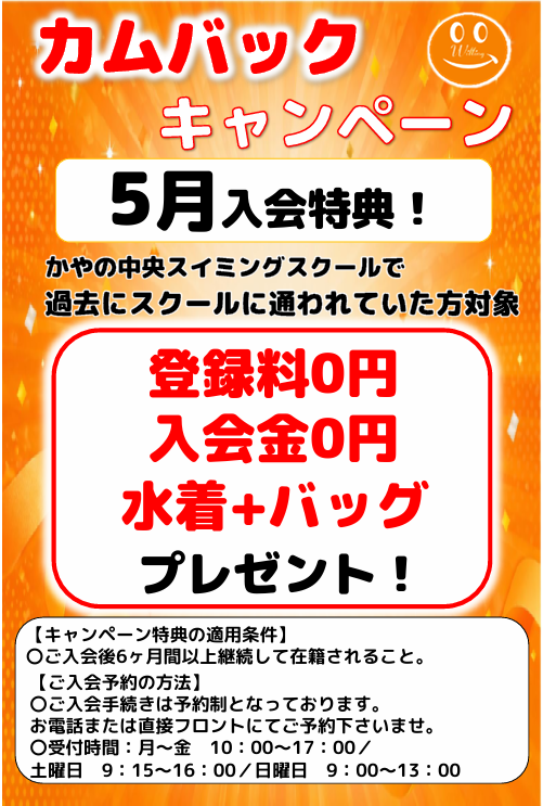 - 史上最大のキャンペーンがはじまります!🎍✨(当社比)新年あけましておめでとうございます! かやの中央スイミングスクールです🏊♂️ 2026年、新しい習い事をスタ… 続きを読む: 史上最大のキャンペーンがはじまります!🎍✨(当社比)